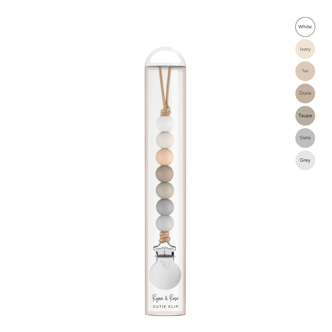 Say goodbye to lost pacifiers with a handmade Cutie Clip. They are not only lightweight and easy to attach but also flexible, safe and handmade by moms in Tennessee. Our pacifier clips are the ideal length, keeping pacifiers off the ground and preventing the risk of strangulation, ultimately giving parents peace of mind. It's not just for pacifiers either—it can also be used with teethers and toys, ensuring they are always within reach and not getting lost. Each Cutie Clip is handmade and inspected by the team to guarantee both safety and durability. With the stainless steel Ryan & Rose clip, you can rest assured that it will stay securely attached.