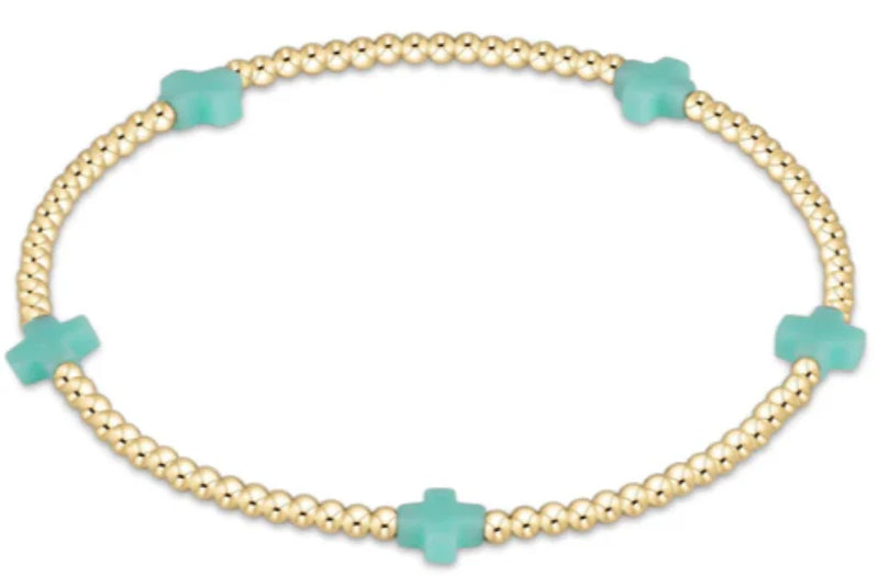 enewton EGirl Signature Cross Small Gold 2mm Bead Bracelet- Mint