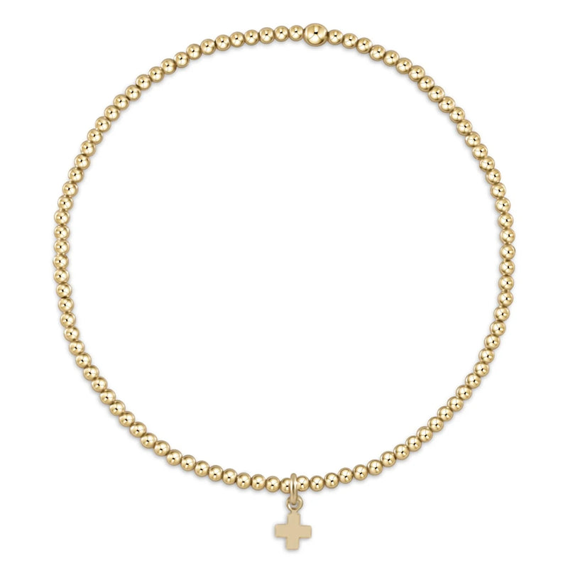 enewton EGirl Classic Gold 2mm Bead Bracelet- Signature Cross Small Gold Charm