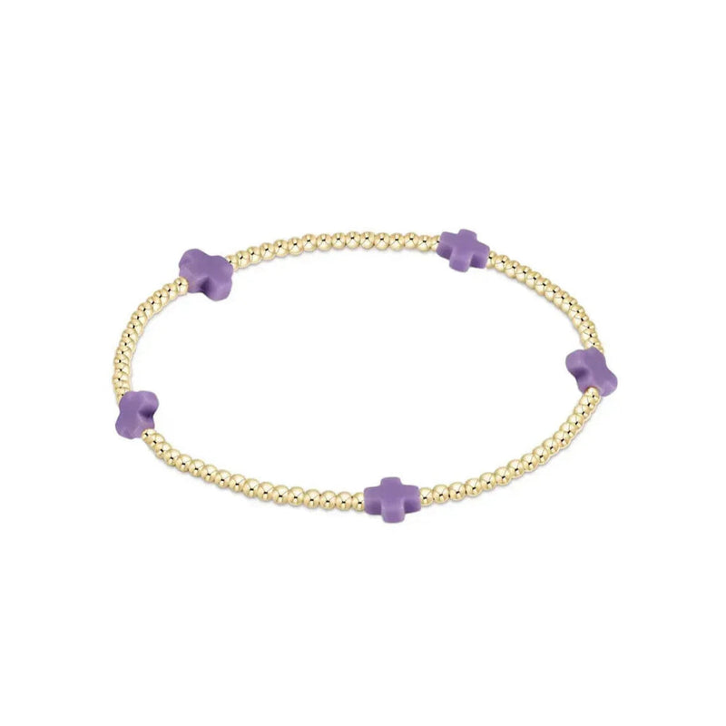 enewton EGirl Signature Cross Small Gold 2mm Bead Bracelet- Purple