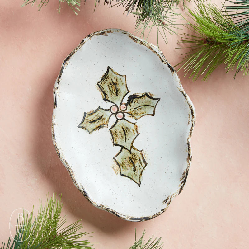 The Holy Cross Dish from Etta B Pottery offers a meaningful design for the holiday season. Hand-painted with a simple holly cross at the center, it’s a piece that blends faith and tradition with the warmth of handcrafted pottery. Its smaller size makes it ideal for serving snacks, candies, or baked goods, while its thoughtful artwork also makes it a beautiful display piece.