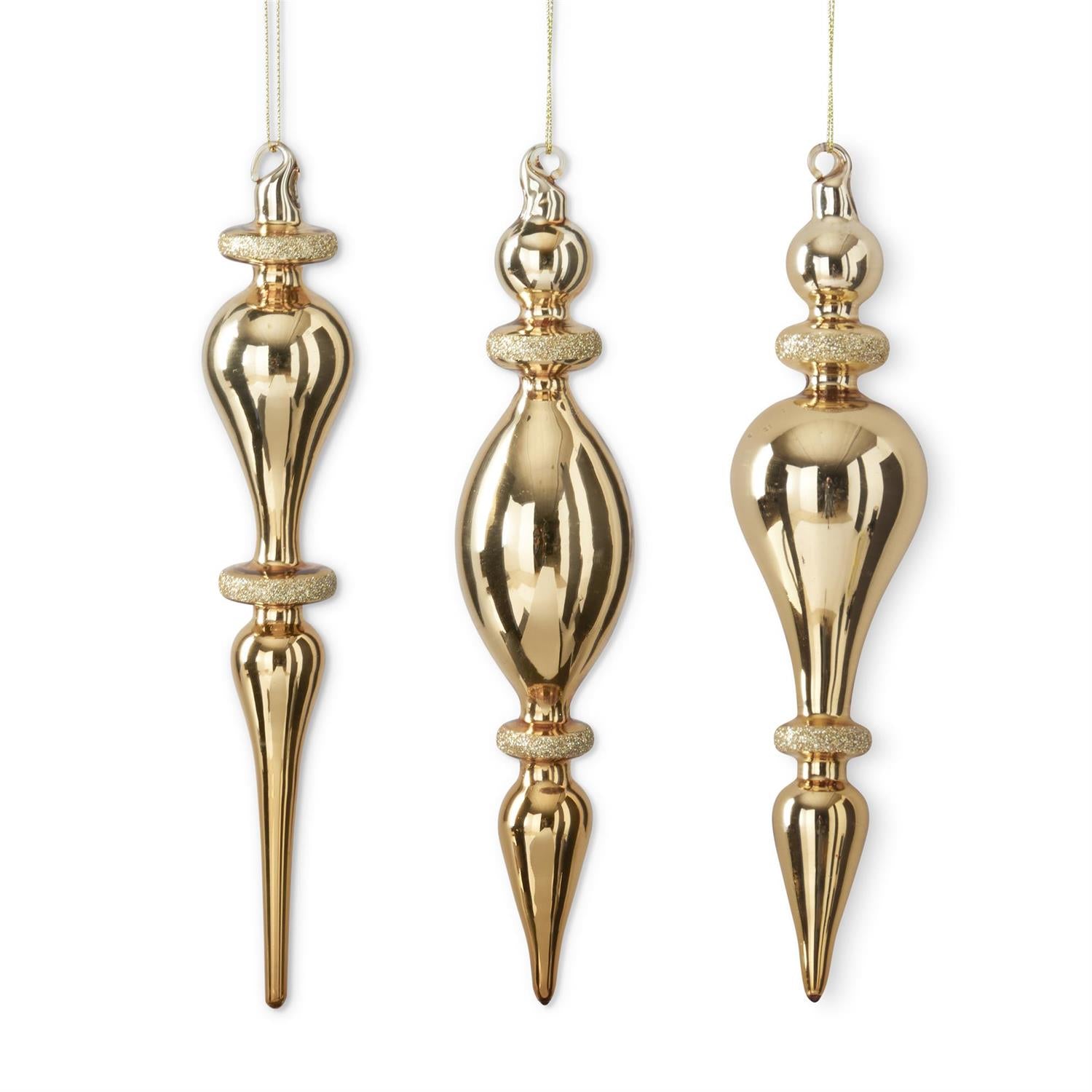 Assorted 8.5 Inch Gold Glass Finial Ornaments w/Gold Glitter Trim