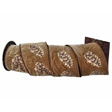 4"x5Y Embroidered Suede Pinecone Ribbon