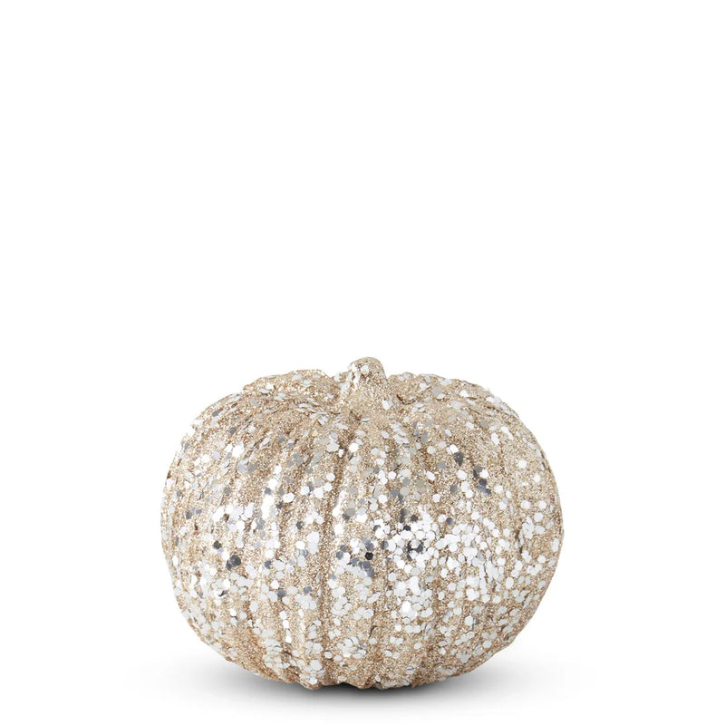 K&K Interiors 8 Inch Champagne Glitter & Sequin Pumpkins
