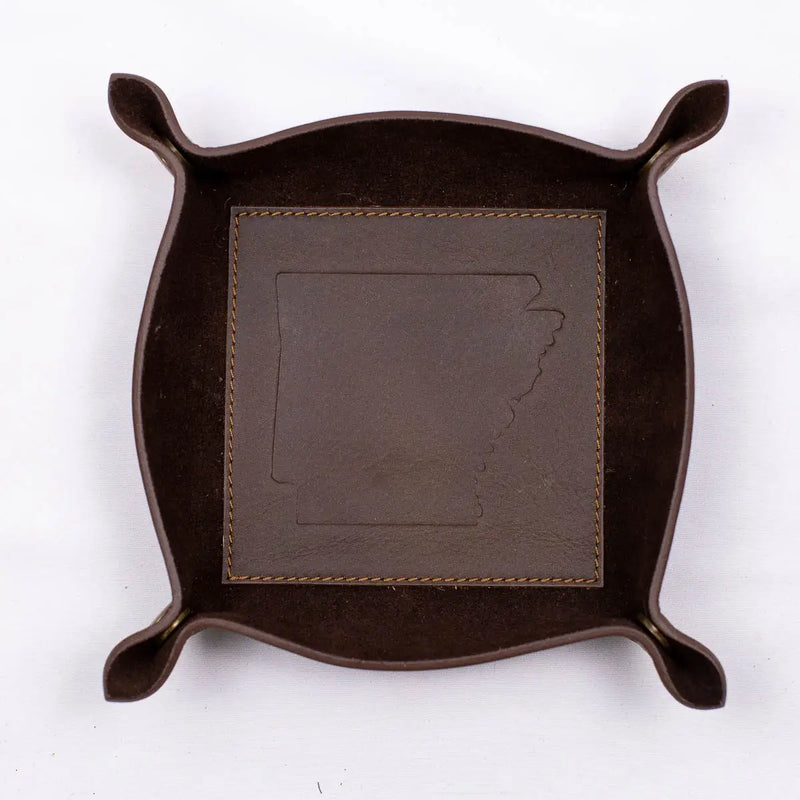 The Royal Standard Dark Brown Leather Embossed Valet Tray- Arkansas