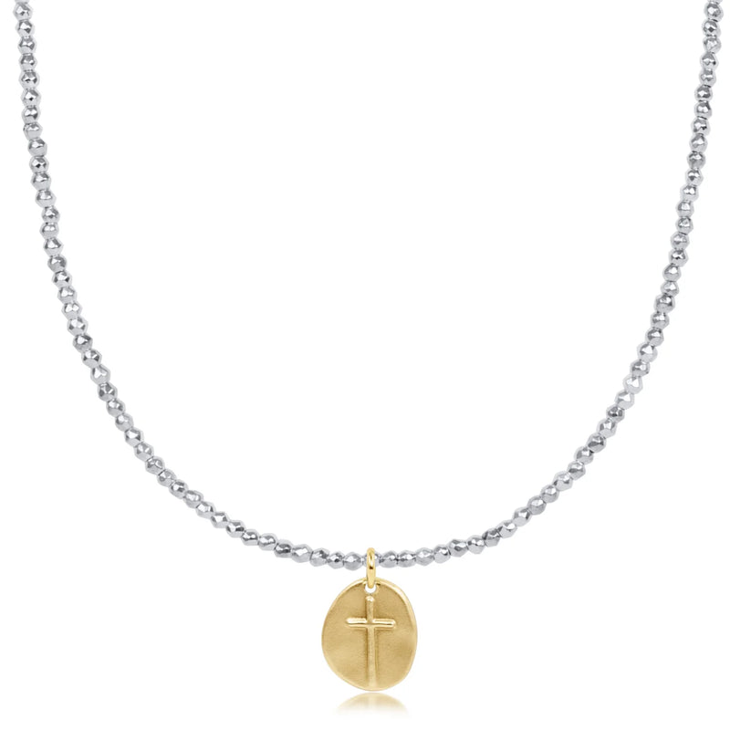 enewton 17" Choker Bright Silver Faceted Hematite 2mm Bead- Inspire Small Gold Charm
