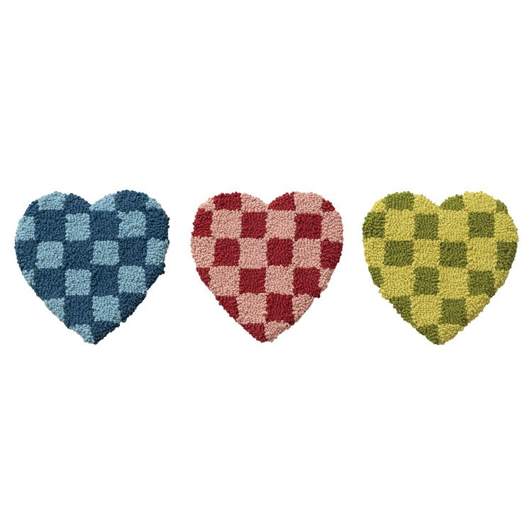 Hazel Mazel Cotton Tufted Heart Shaped Trivet With Check Pattern