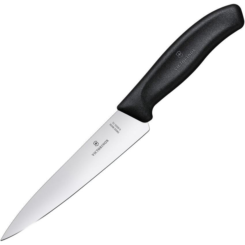 6" (15.24cm) satin finish stainless blade. Black TPE handle. Dishwasher safe. Boxed with hanging tab. Made in Switzerland.