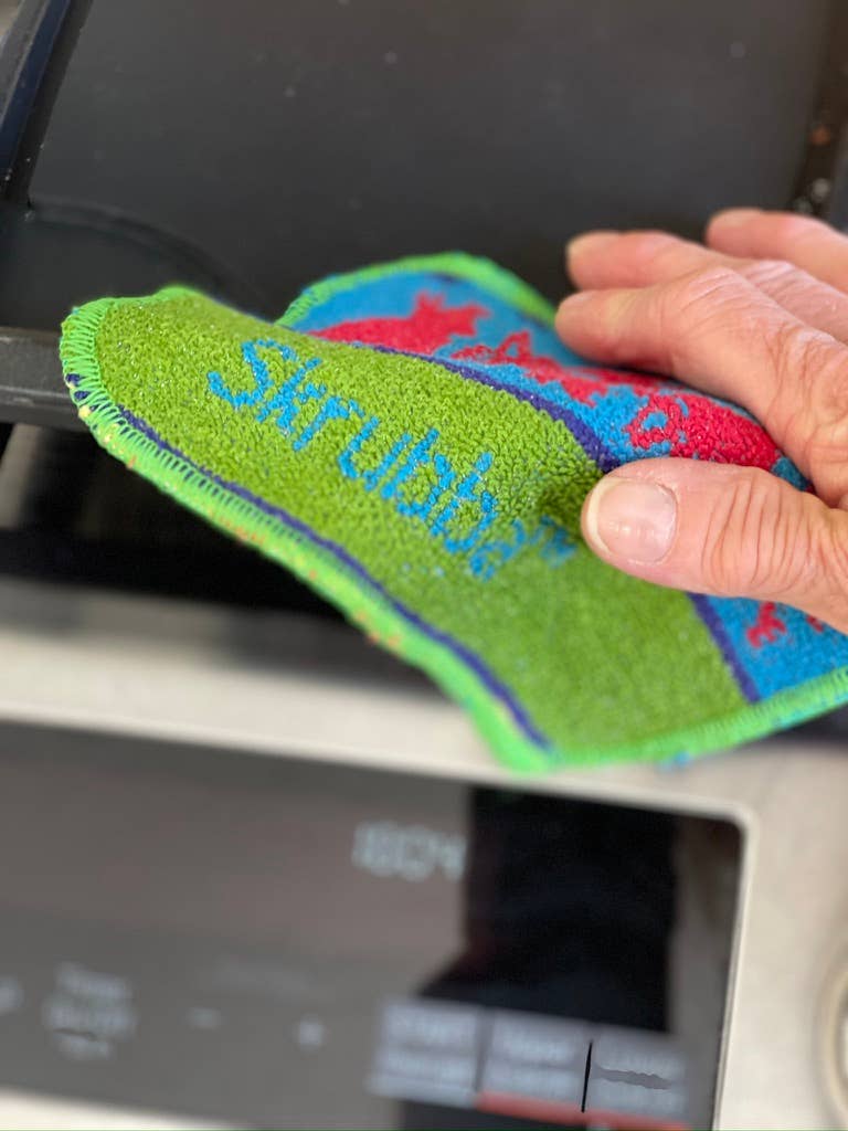 Skrubba is a scouring cloth that is abrasive yet scratch-free with normal use. Skrubba is made of 97% cotton and 3% eco-friendly, non-toxic coating.