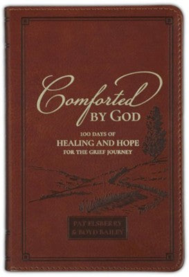 In the Comforted by God Honey-Brown Faux Leather Devotional Gift Book, Pat Elsberry and Boyd Bailey take readers on a devotional journey that offers hope, healing, and encouragement to those experiencing grief. Through their own encounters with loss and grief, the authors provide spiritual insight and practical wisdom to help readers navigate the stages of grief and find their way to healing. Whether you are mourning a loss, dealing with trauma, or seeking solace in difficult times, these devotions will be a source of healing and hope. The honey-brown faux leather cover of the devotional book is heat-debossed with a tranquil landscape design. The title and subtitle are gold-foiled and set above the scene.