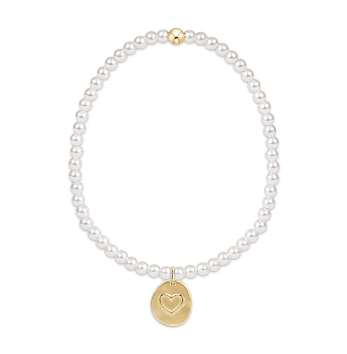 Extends Classic Pearl 3mm Bead Bracelet- Inspire Love Small Gold Charm
