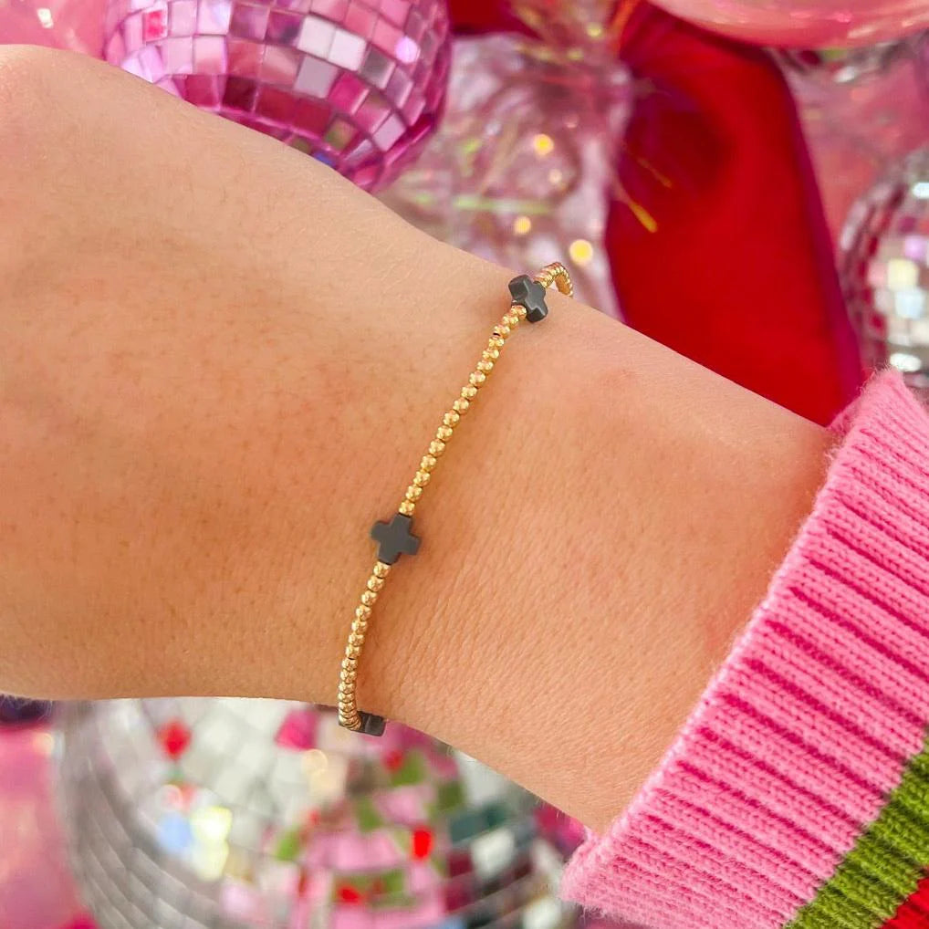 enewton Signature Cross Gold 2mm Bead Bracelet- Onyx