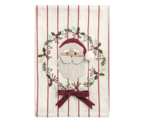 Santa Applique Towel is a festive addition to your holiday decor, perfect for adding a touch of seasonal charm to your bathroom or kitchen. This beautifully crafted hand towel features intricate appliqué work, showcasing a delightful Santa design that brings joy and warmth to any space. The embroidery adds a layer of elegance, while the bead accents provide a subtle sparkle, capturing the magic of the season. A luxurious velvet bow detail completes the look, making it a standout piece. Measuring 21" x 14", this towel is made from a high-quality blend of 79% cotton, 18% polyester, and 3% other fibers, ensuring softness, durability, and absorbency. Ideal for gifting or personal use, it combines functionality with festive flair, making it a must-have for the holiday season.