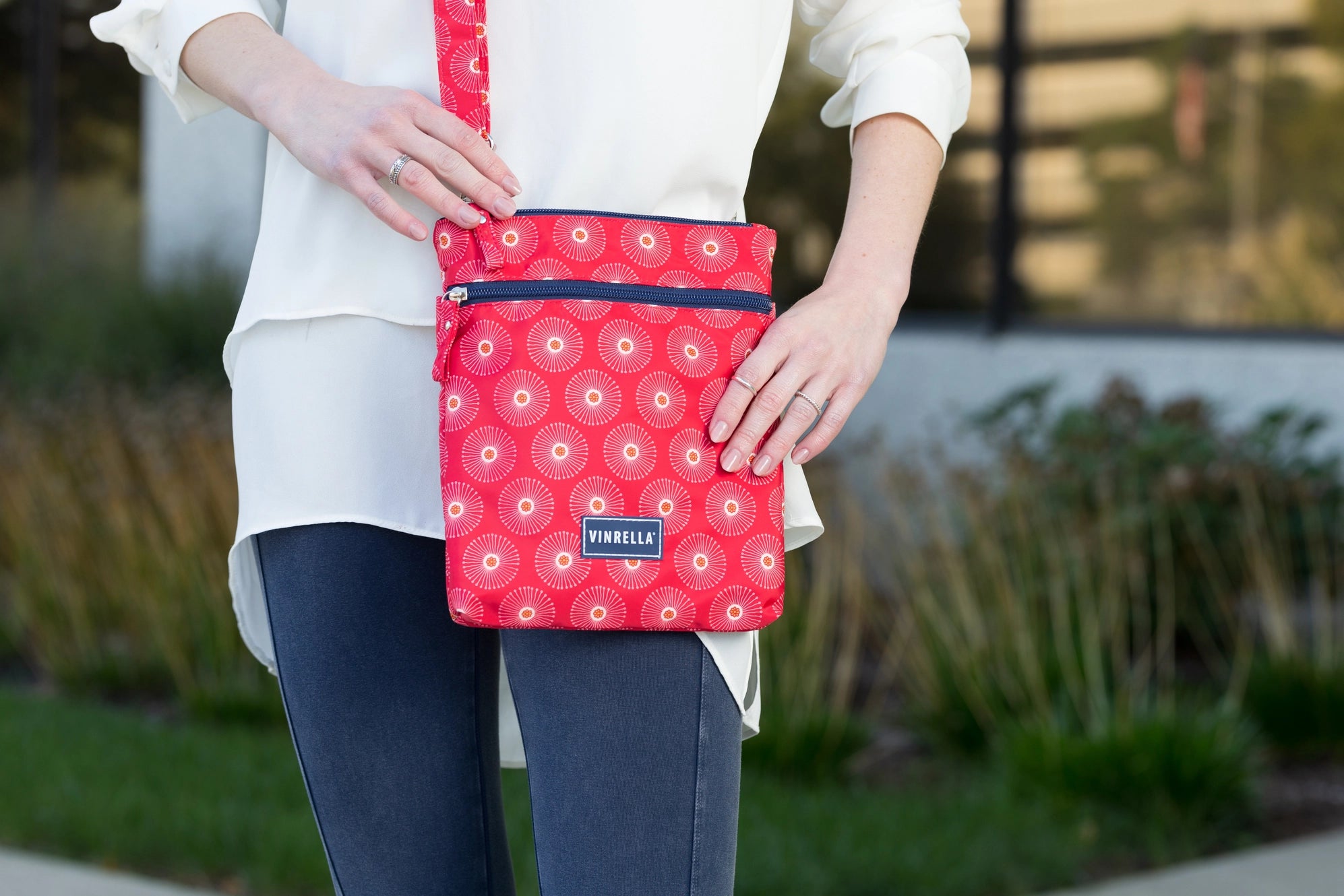 100% Polyester, Silky Smooth, Water Resistant, Front and Zip Back Pockets for Essentials Items, Adjustable Strap. 8.5" W x 10" H